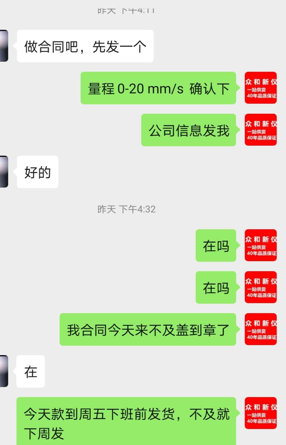 過了一會兒,客戶通知我做1臺CZJ-B3振動烈度監(jiān)視儀合同,我跟客戶講量程0-20 mm/s要確認,讓他把公司信息發(fā)我,我做合同要用。提醒客戶當天付款周五可發(fā),如果不急下周發(fā),客戶說下周發(fā)太晚了,希望周五發(fā)貨,我建議客戶當天打款。客戶馬上把公司詳細信息發(fā)我做合同,量程他在確認。我把公司的匯款信息發(fā)給他,提醒他匯完款拍個底單我,如果客戶有匯錯的情況發(fā)生,我能先核對下,以免到賬款晚了影響發(fā)貨,這種匯錯的情況還是有的。一會客戶對我說匯款賬號不對,又退回了,我肯定地回復,給他的匯款信息是沒有問題的,讓他仔細看下信息。幾分鐘后客戶把匯款底單拍我了,我核對后沒有問題,隨后量程也確認到了給我,我把合同做好了,等明天蓋章后發(fā)客戶,當天下班時間到了,已來不及走流程。