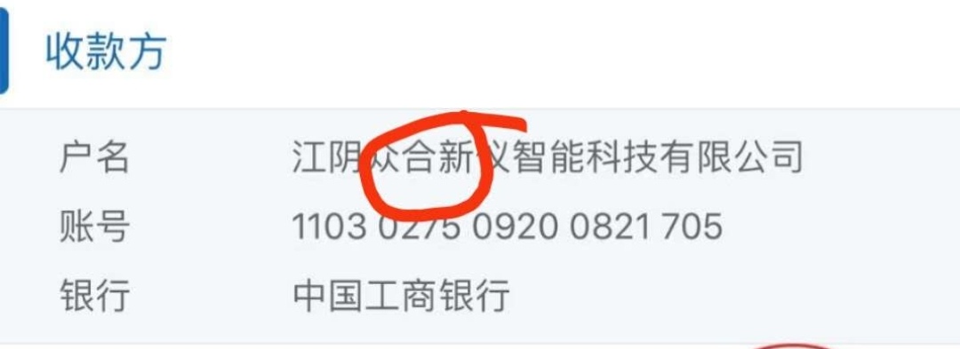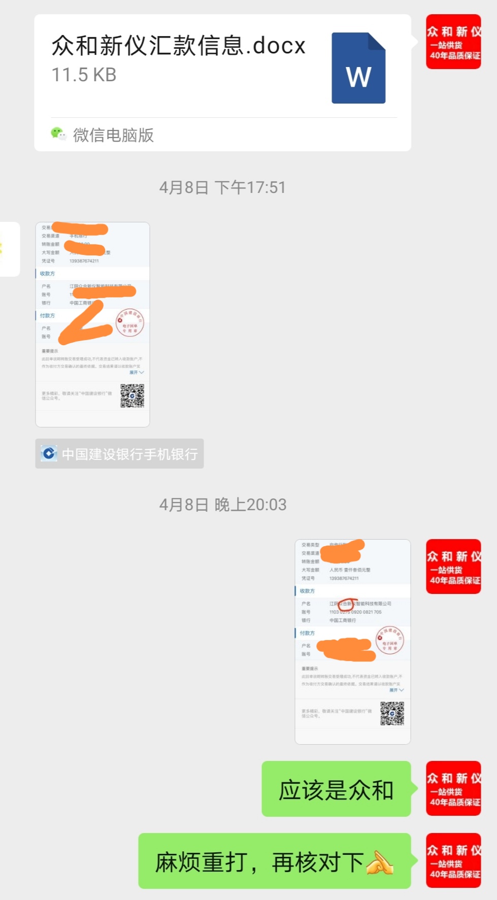 【眾和新儀】購買SZ-6打款誤把“江陰眾和”為“江陰眾合”