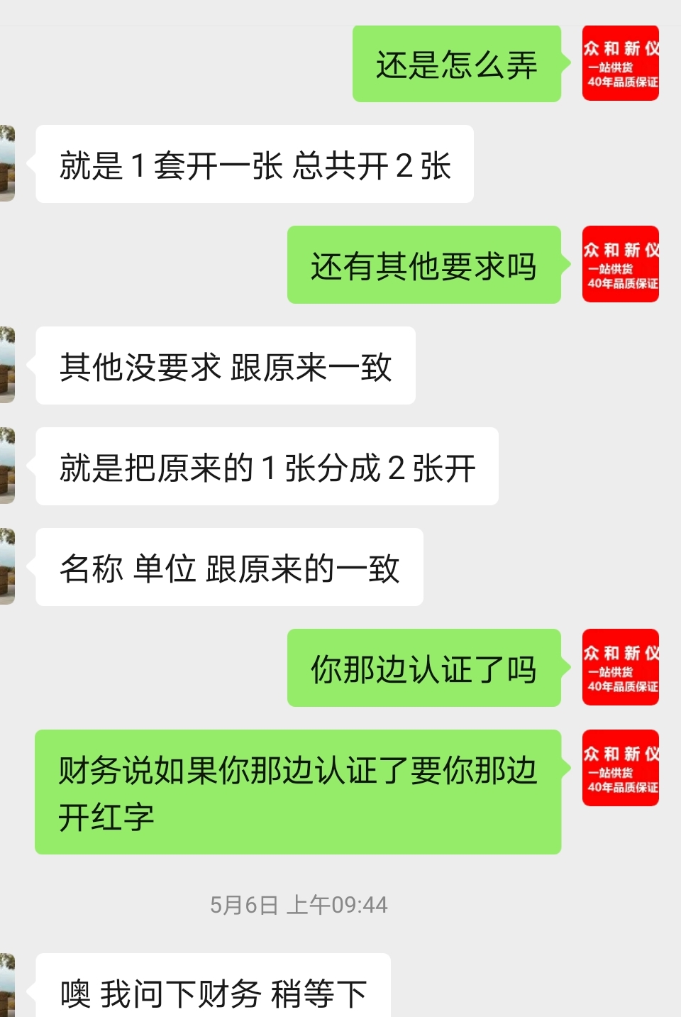 浙江客戶(hù)購(gòu)買(mǎi)2套ZH3000電渦流傳感器,用戶(hù)是國(guó)外的要出口,按客戶(hù)說(shuō)的開(kāi)了票,由于報(bào)關(guān)時(shí)不是同一批,最后還要重開(kāi)。